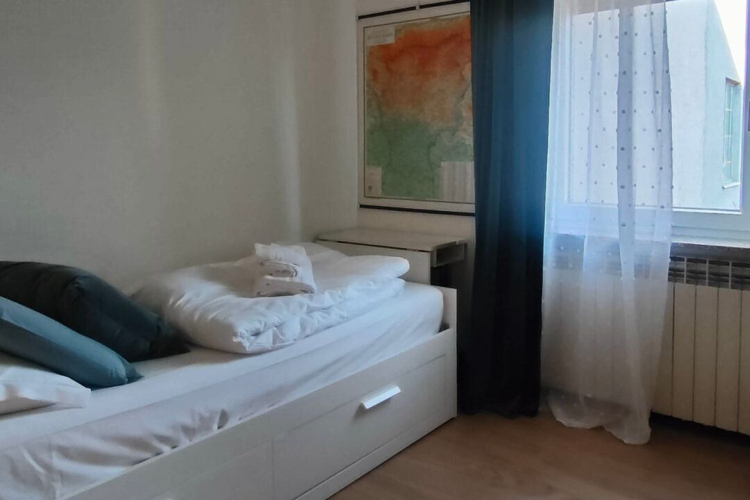 Accogliente appartamento con due ampie camere e un luminoso soggiorno con dettagli in pietra. La cucina separata è attrezzata con...