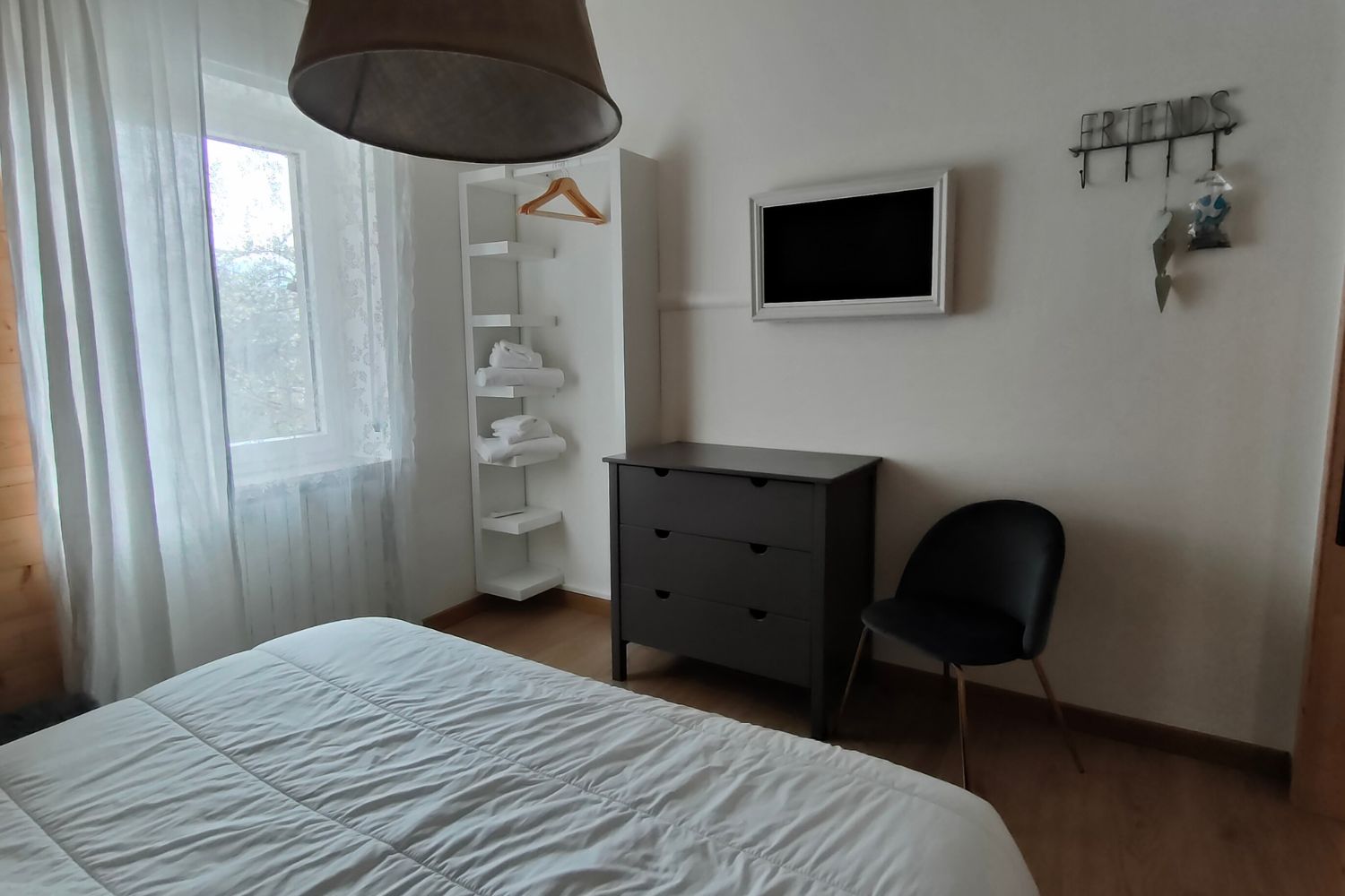 L’alloggio è al secondo piano di una palazzina ed è composto da 1 camera da letto matrimoniale, 1 camera con letto singolo che all’occorrenza può diventare doppio per un totale di 4 posti letto, bagno di nuova ristrutturazione con doccia, piccola zona living con cucina provvista di attrezzatura. L’appartamento è fornito di lavatrice, forno elettrico, forno a microonde, rilevatore di monossido di carbonio, rilevatore fughe gas, estintore, wifi, 2 TV LCD (una in ogni stanza) ed è dotato di un’ampia loggia coperta con arredamento da esterno.
